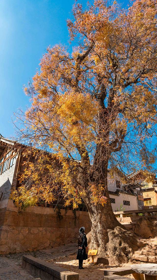 沙溪古镇有一颗古树苍木,沙溪的秋天来得比较晚,这颗古树挂开满了金叶,像是一颗参天古树伫立于此,守护着沙溪这座古镇。