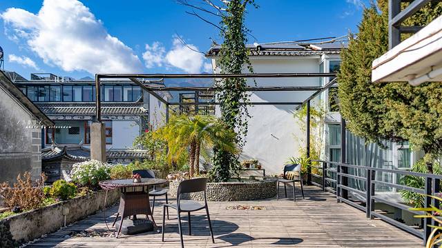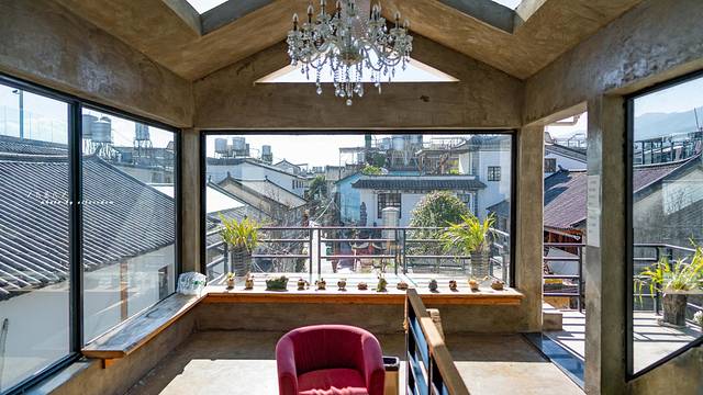 客栈一边是房间,一边是户外公共区域,超级喜欢这个户外的公共区域,位于客栈的二楼,有一个全是玻璃的大房子,阳光透过玻璃洒进来,晒在身上,暖洋洋,满是欢喜,冬日的额午后,不妨在这里来一场超美的沐光浴。