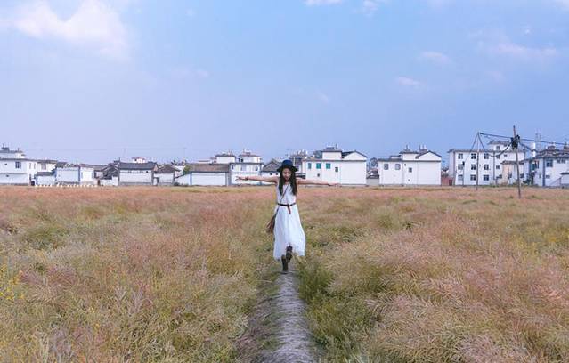 这里应该算是 喜洲 的网红地了把,要是早半个月来才对,那时油菜花开的正旺,但依旧很美,就这样在草丛红肆意奔跑,油菜花中都会有一条小路,切记要破坏花草哟。