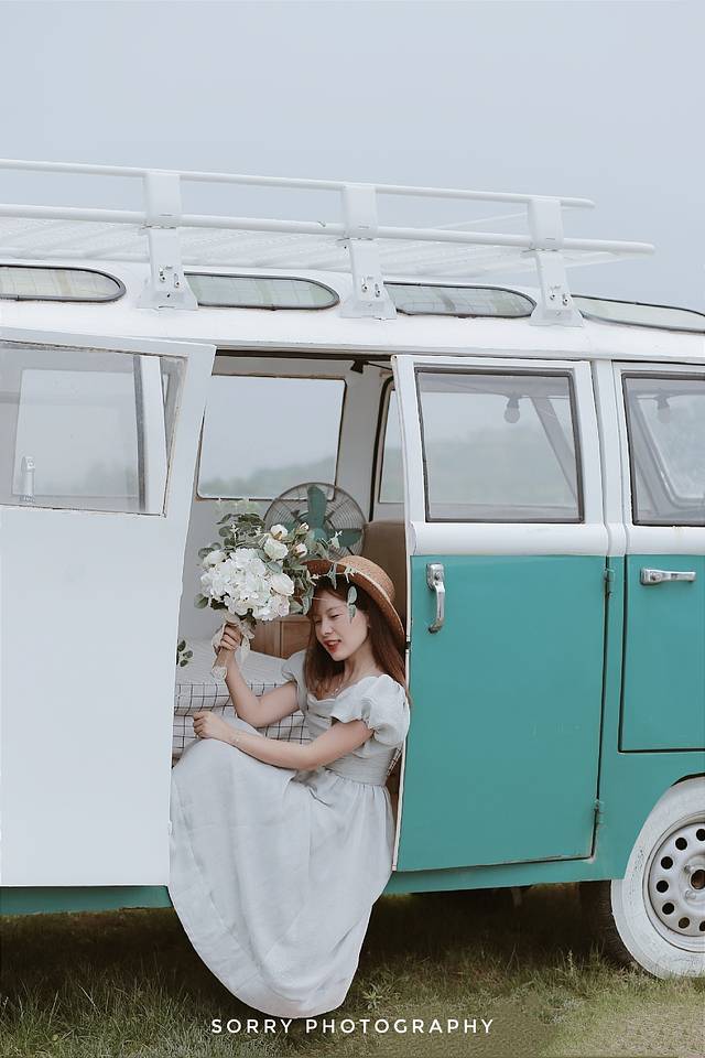 营地有 1 辆房车可以住宿,其余 2 辆超级美的复古房车可以拍照打卡:薄荷绿、少女粉,可清新、可少女心...