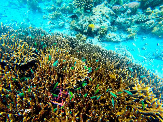 下面的照片,都是她们 三岛 浮潜回来的,比卡帕莱的水底珊瑚要更多,但是岛上设施一般般