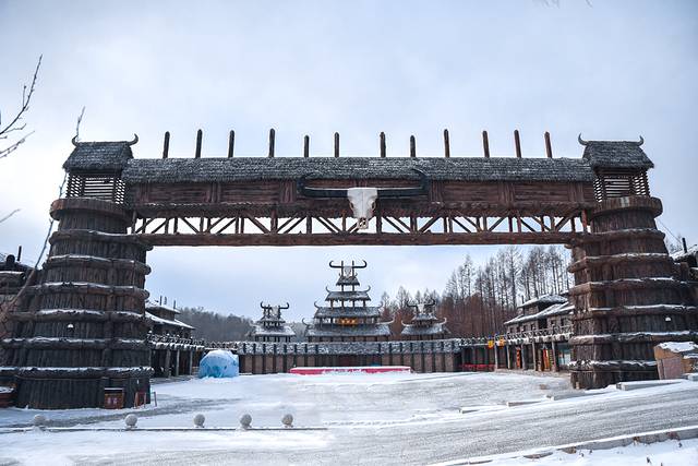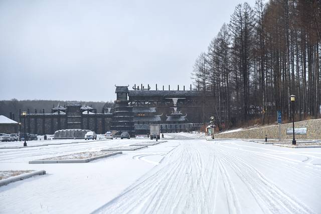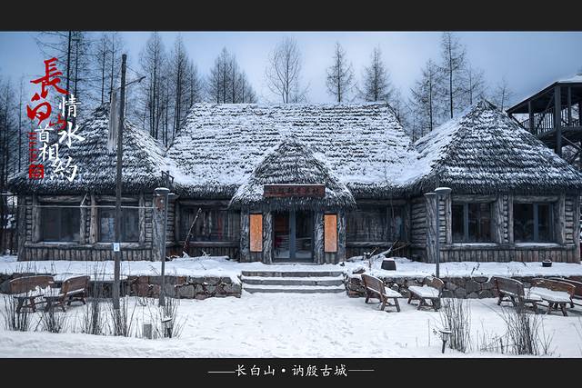 讷殷古城,位于长白山池南区锦江和满江交汇处,国家4A景区。抵达景区停车场前,转弯的第一瞥让我惊讶,恒大冰泉矿泉水,生产地就在这不远处。后来我才得知,长白山是世界三大矿泉水产地之一。气势恢宏的景区大门,极有历史古装剧军营的威严气息。别看广场白茫茫一片,其实这雪质,比南方雪质更干燥、细腻,东北冬季极少下雨,所以积雪重压之后,不滑。踩在上面,伴有清脆的咯吱咯吱的声音
