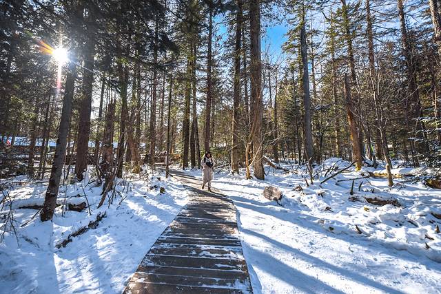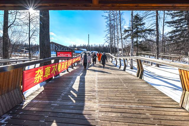 2018年,评定为国家4A景区。这个景区所陈列、再现、记载的史实,囊括了长白山最早期人类活动、历经三千多年历史、封建时期结束前的与当地人相关的重大文化传承、名人事迹功绩。简单来说,告诉你,长白山孕育了什么样的民族,这个民族在中华五千文明史中创立的大事记。景区一侧还有当下流行的“雪国列车”等体验项目,极目远眺,那平整开阔的林场雪道,比南方人工开造的滑雪道,可更让人兴奋了