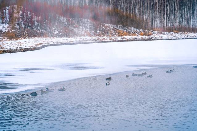 但凡太阳一下山,这个温度降得就很快。都说东北地区,冬季只要不刮风、穿的够厚,那还是可以适应的。为了验证一下,我发现,正常行驶的汽车车窗内,在经历几分钟的疾驰后,结起了霜,这也是难得一见。尤其是在户外雪地徒步、站立一会后,再坐进车中,仿佛身体都有要被融化的感觉