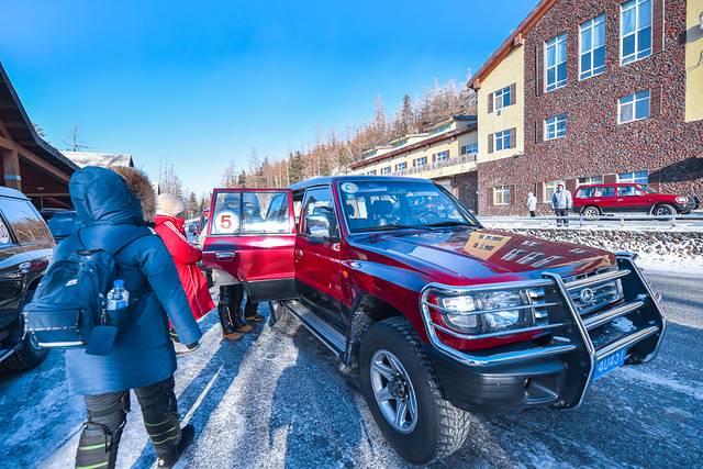来长白山第一件事,就是抗的了冻(温度低得多)、经的起重(衣服穿得多),然后就是不耽误一分钟——严格做好时间规划,毕竟在这每天16点多,就临近日落。所以,刚一下飞机,与提前联系好的出租车师傅会师,马不停蹄去往第一处景点。当坐上温暖如春的出租车时,那种冰火两重天的感觉,即刻上演。经过40分钟车程,60码的“奔驰”,在全装雪地胎的出租车、经验丰富的师傅装载之下,江南水乡人终于踏实了北国长白山这片神圣的土地