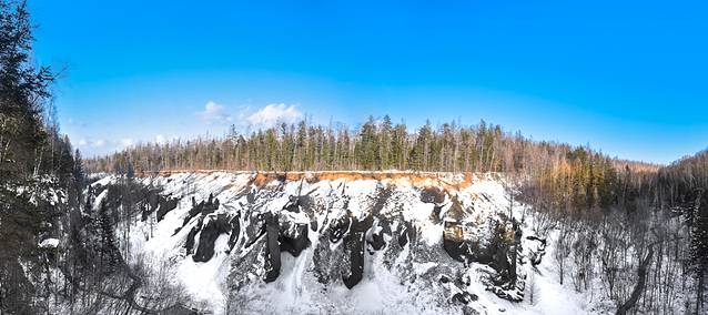 峡谷浮石林,又名景岗山,后人也称“火山峡谷”、“峡谷沙林”。它位于长白山北坡景区山门东南6公里处,坐落在火山爆发,地壳变动后形成的一条大裂谷中,是游双目峰、界碑、园池、钓鲁台的必经之地。景区主要景点山神台、猎人屋、无字碑、吉祥树、梯子河、山神台等。最具代表性的则是40米深、长5000米的峡谷,熔岩喷薄形成的石头,如浮雕、壁画般栩栩如生的凸显在崖壁之上。站在入口一处悬崖观景平台,可俯瞰全景。上有白桦林、落叶松,中有石林画,下有峡谷木栈道,景观很有层次感、立体感,身历其境,尤为震撼