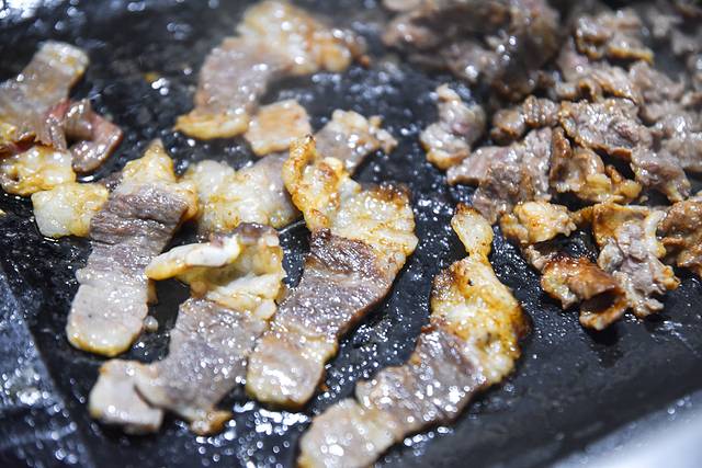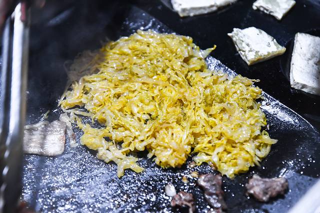 餐厅环境整洁、餐桌摆放有序,进入餐厅,穿着短袖的服务人员,让我着实感受了“冰火两重天”的真正魅力。餐厅明码标价,来吃烤肉当然少不了,当地特色的延吉小黄牛、五花肉这些。东北酸菜烤着吃,也是第一次体验。来2瓶哈尔滨啤酒,解解乏。这第一餐也是大快朵颐