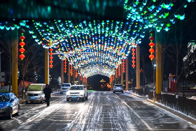 途径长白山下第一镇“二道白河镇”,这标志性的网红夜景打卡点,必是暖化每一个游客的心,梦幻至极~