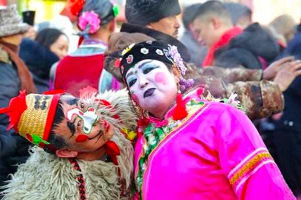 尤其是元宵节期间,可以说是隆重过年的高潮。从正月十四到正月十六,白天,十里八乡的社火队都聚集在县城的和平路上耍社火。晚上村村堡堡锣鼓喧天唱起大戏,广场是绚丽的花灯展,还有绚丽的打树花表演。