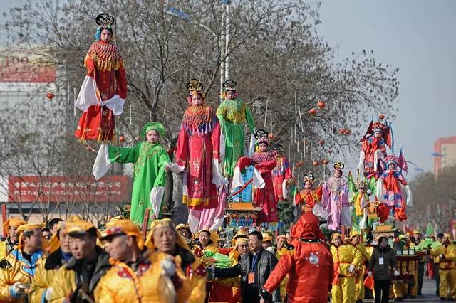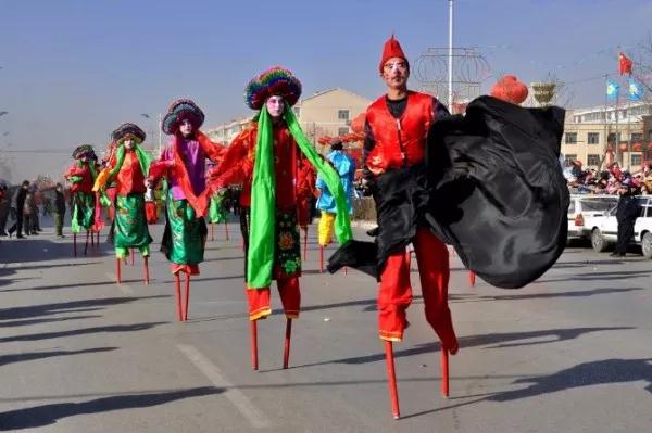 “蔚县高跷”是表演者扮演生、旦、丑等角色,脚踩三至五尺高的高跷,灵活扭动。
