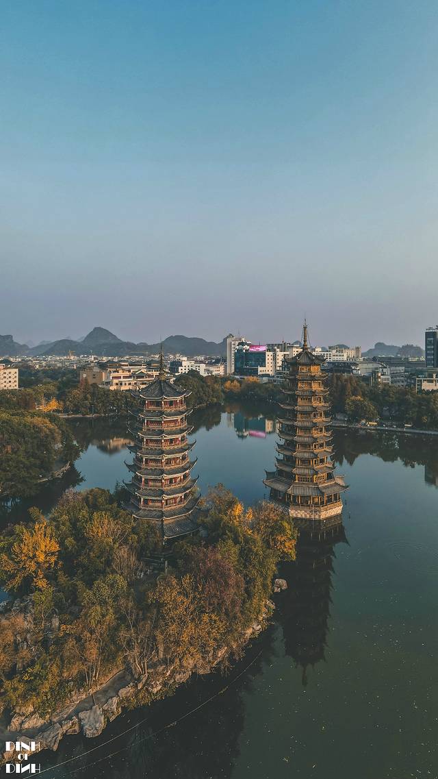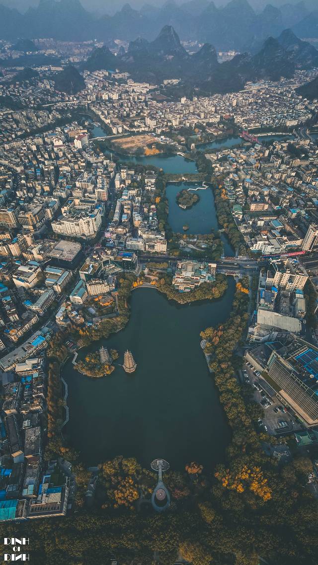 訾洲岛叫岛,其实也就是个半岛,把訾洲岛安排在行程中,还有一个重要的原因,那是 桂林 老出名老出名的老东江 桂林 米粉就在訾洲岛步行五分钟可到的距离,你说这两个点连在一起的加持力,能不专门来打个卡吗?没想到正好碰到了它最艳丽的季节。红的似火,粉的似霞,黄的似金,绿的似翠,在阳光下闪闪发光。这应该就是我对訾洲岛航拍的第一印象吧。