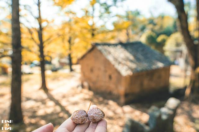 低头捡叶子的时候,发现除了叶子还有大收获,银杏果呢~村里买的白果就是银杏果扒了皮的核。这也是我第一次看到树上掉下来的银杏果,银杏树真的是个好东西啊,黄了可以拍照,结果了可以食用。