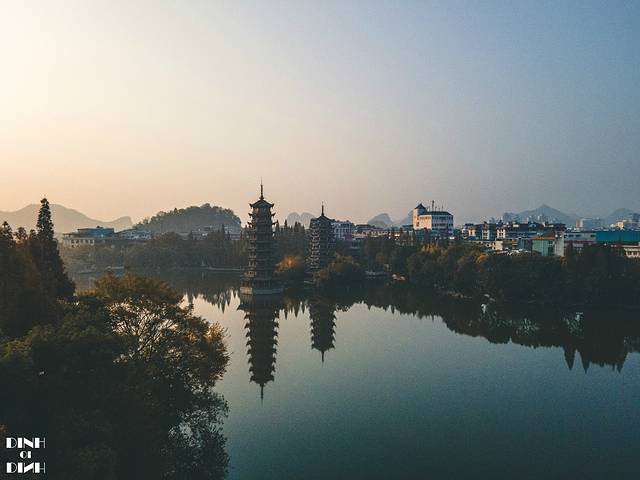 两江四湖包括了 桂林 市中心区的漓江、桃花江以及杉湖、榕湖、桂湖、木龙湖,是 桂林 城市中心优美的环城风景带,也是 桂林 的风景名片。其中日月双塔座落在杉湖是最有代表性的湖。