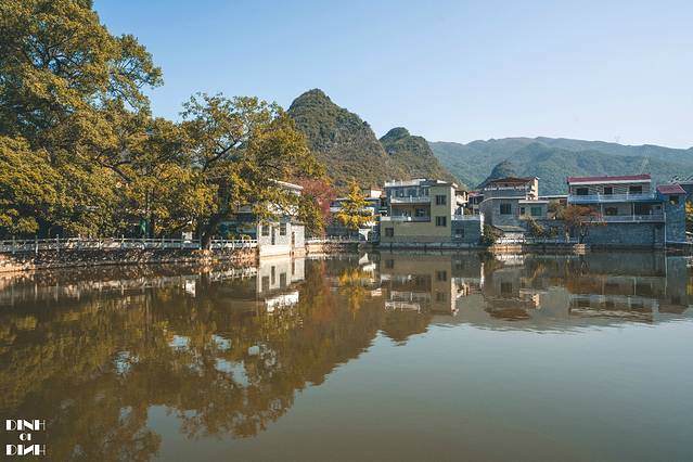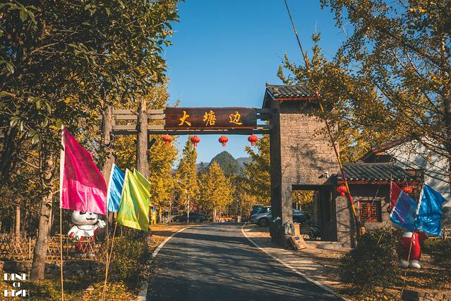 因为村子建在一个大水塘边上,所以村子直接简单粗暴的命名大塘边了,平时进村时不收费的,只有银杏的季节村委会在村口拦着收费。村里有一片停车场,整体来说适合自驾的朋友去。村里农家乐比较多,早上从 桂林 出发来这里吃个午饭也是不错的,这个季节要个土鸡火锅正好了。