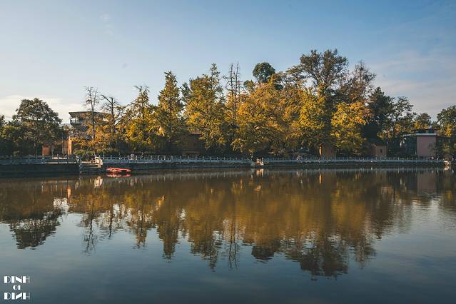 杉湖的历史最早可追溯到唐宋。是当时人工挖掘的南护城河。明代城池扩建,被包在城中。自明代始,政府机构多设在湖边,名流士绅亦多居住于湖边,文人常常在湖畔活动,杉湖遂成为 桂林 的文化中心。白天晚上都是不一样的风景,这个季节正值银杏和红枫变色的季节,整个杉湖环湖的树木都披上了彩色。
