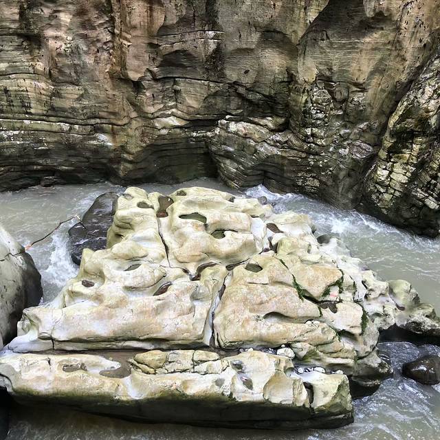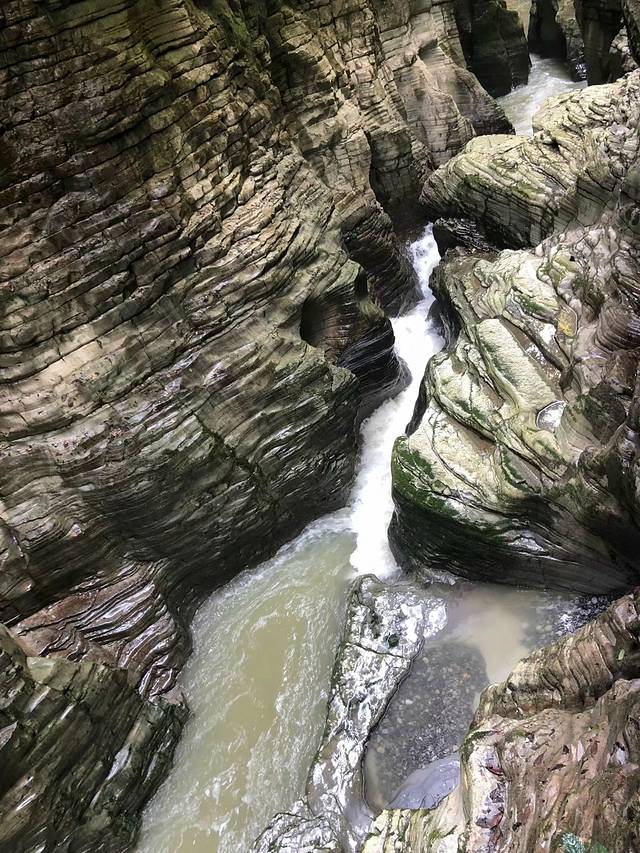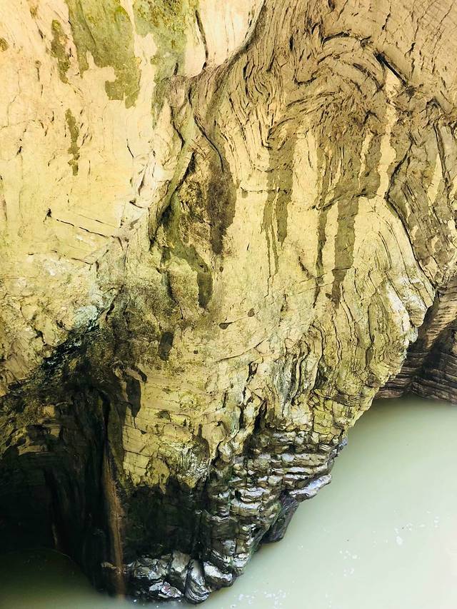 两边的岩层是这样有纹理的,看起来就很有年代很有历史的感觉,无奈普通的我们是看不出个所以然的,只能瞻仰一下