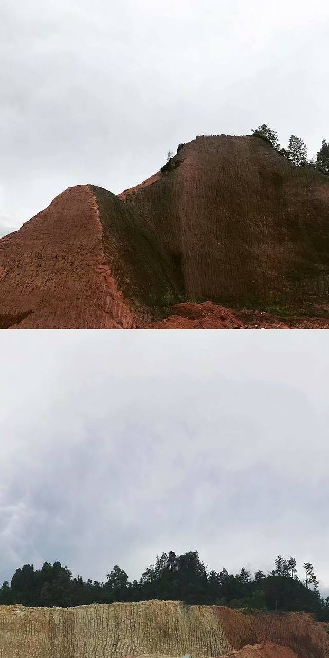 下公交车往回走两分钟再往里走就能看到很像南疆人口中的七彩的不知道属于雅丹地貌还是丹霞地貌的横切面,学术不精的帆帆子在线自卑,只能po图出来给大神看看能不能得到正确的答案,看到这个再往里面走经过停车场就能到土司城的入口了。