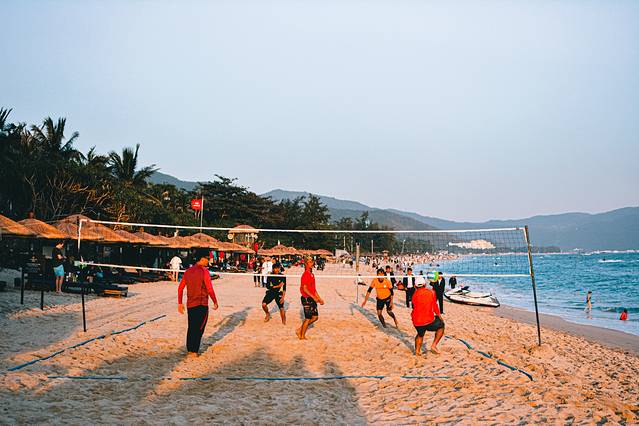 除了水上项目,沙滩娱乐项目也是很多,沙滩足球、沙滩排球,应有尽有。在蔚蓝的海岸边上,尽情玩乐和挥洒汗水,人生一件快事。