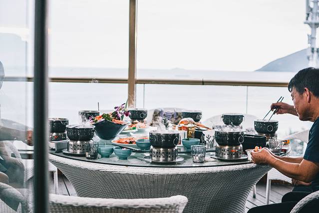 最主要的是窗外不远处就是大海,视野绝佳,吃着自助海鲜,看着海景黄昏日落,很是惬意。