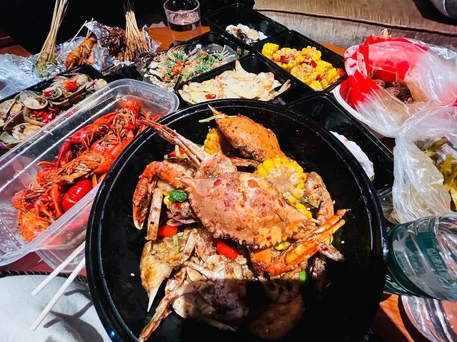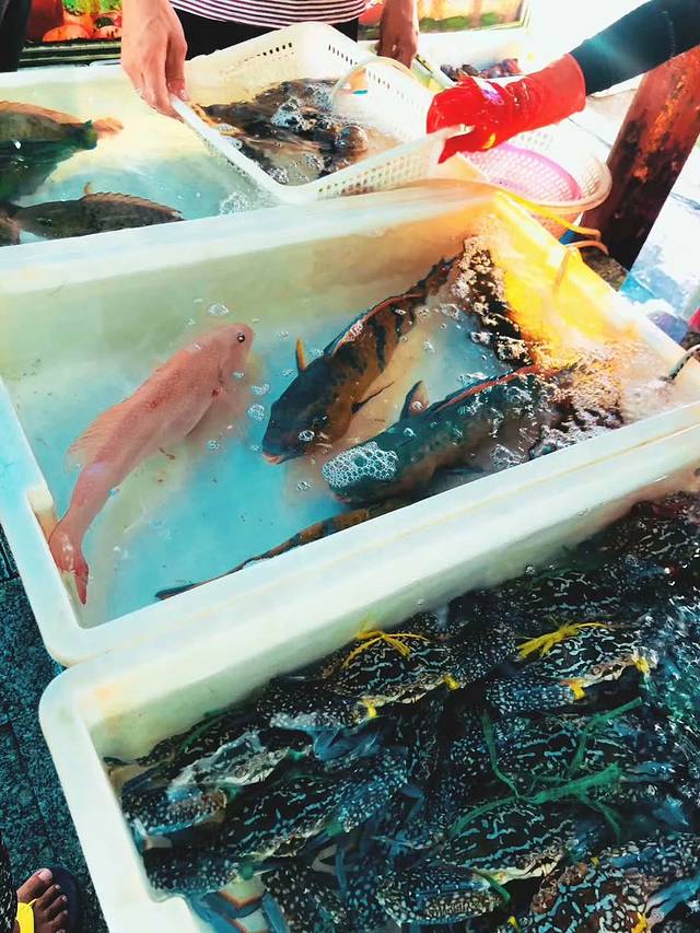 其实这里的海鲜也不是很便宜,不过可以买一些,“打包的”,就是有人吆喝,1大盆80块钱,全拿走,这样的。