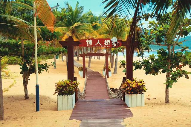 呆呆岛位于南湾半岛的西南的位置的滨海区域里面,它的西边是和清水湾的度假区挨着,南边是和这个蜈支洲岛相隔对望。
