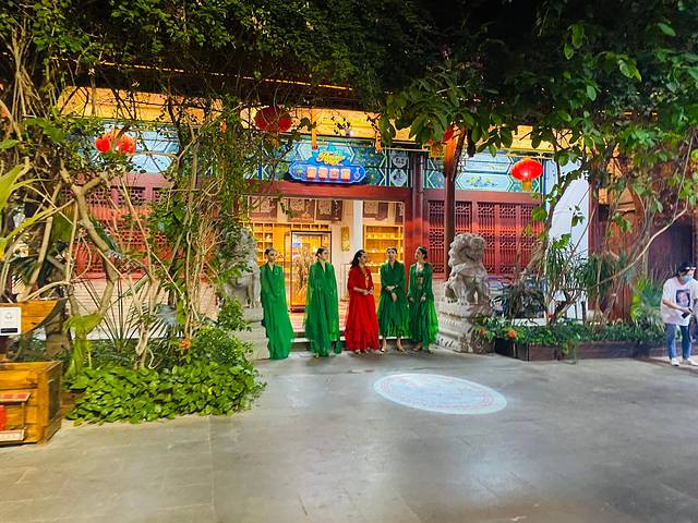 千古情景区每天有很多表演,有不同的乐园场馆,不过到晚上的时候很多都关了,只能在里面逛逛,看看室外的一些表演,千古情演出一天好像只有三场吧,我们预定的是最后一场晚上八点的场次,去的时候有点早就随便逛了一会儿吃了点小吃,看了三场广场上的表演。