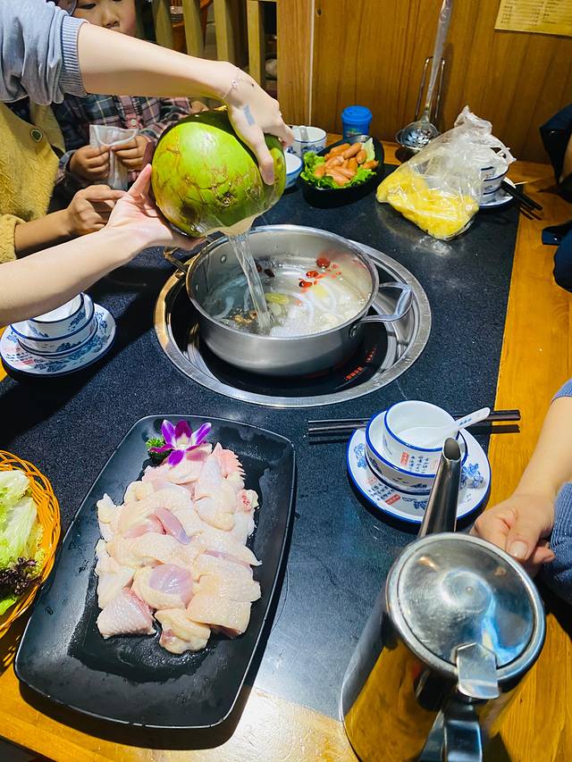 入住酒店以后已经是七点多了,随便在对面的美食街找了一家椰子鸡吃,但是真心吃不惯,还是喜欢吃重口味的麻辣火锅,所以也不知道我们吃的这家椰子鸡正宗不正宗了,不过椰汁是真的新鲜现切开倒进去的。