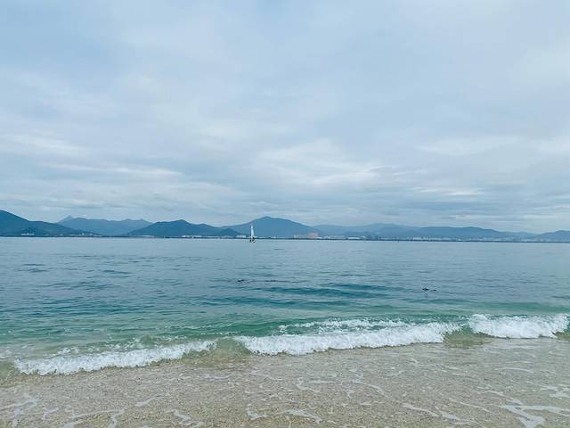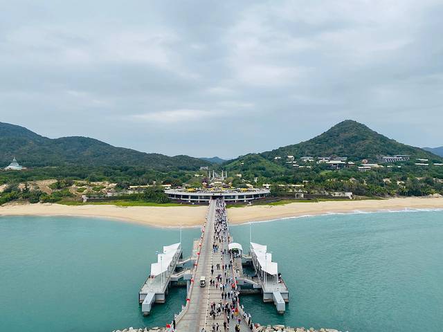 从观音脚下看南山景区的视野是真的很美,北面是绿树成荫的南山和干净的海岸线,南面是海天相接的浩瀚壮观。