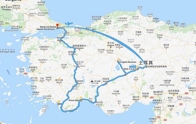 除了伊斯坦布尔到开塞利是坐飞机,之后全程顺时针自驾
