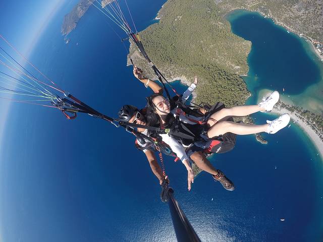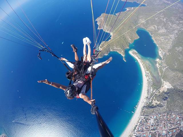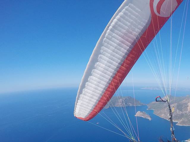 我指着前方别人正在空中疯狂转圈的滑翔伞,教练立马也开始了疯狂旋转……