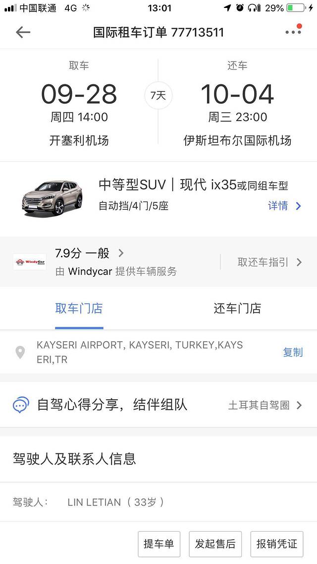 到达开塞利机场取完行李才2点,打电话给租车行的人,工作人员开车来接我们,结果到了那,店员却说找不到我们的订单,打电话给客服核实,订单没问题,后来发现是租车行的内部系统出了问题,我们定的是“ 开塞利取车- 伊斯坦布尔还车,而租车行系统显示的是“ 伊斯坦布尔还和取”,所以 开塞利这边才找不到我们的订单。由于是他们系统问题,为了弥补过失,他们就把自己开的车借给了我们,这么一折腾差不多浪费了1个多钟头 ……