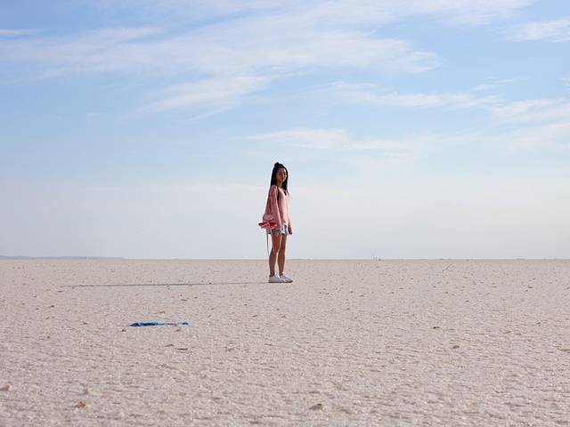小爸说看谷歌地图上图兹湖面积很大,看上去有很多其它的路可以进去,去别的入口找找看会不会有水,于是跟着地图绕了一圈,好几个地方看着很近但都进不去,终于在另一块区域看到了一条马路可以开车进去,看到了一片可以拍天空之境的水塘!