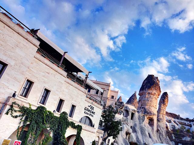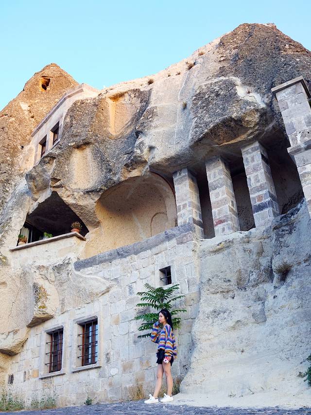 格雷梅里的洞穴酒店,就在网红苏丹酒店的旁边,但价钱实惠很多,我们定的是带露台的房型,早上还能看到热气球,不用和别人抢公共区域的拍照位置,自己在露台上想怎么拍怎么拍!