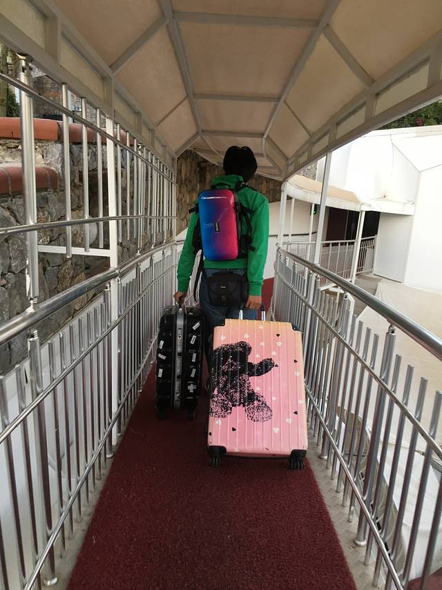一早退房,拿着行李下楼,最后一次吐槽这个酒店,每天上了两层电梯出来之后要走这样一个像临时搭出来的过道,再爬两层旋转楼梯才能到房间 ,到了大堂前台又不见人影(入住那天一开始也找不到人)