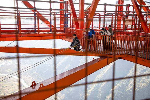 坝陵河大桥上的极限运动真的是刷新了我的认识,第一次见在正常通车的桥梁的下方做跳伞蹦极这种极限运动的,坝陵河大桥蹦极活动大概是去年对外开放的,这个大桥下面目前开放的是高空秋千、滑翔伞、370米蹦极、速降、跳伞、空中漫步、登桥观光等这些项目,是体验世界极限运动项目的理想去处。