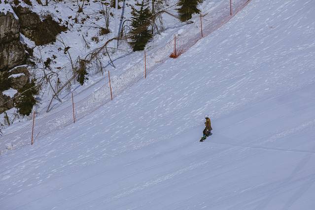 偶遇了一个在高级赛道的滑雪的人,高级赛道超大的陡坡加上急转弯,单板在他的控制下游刃有余,真的很羡慕有着这样高超技术的滑雪者。
