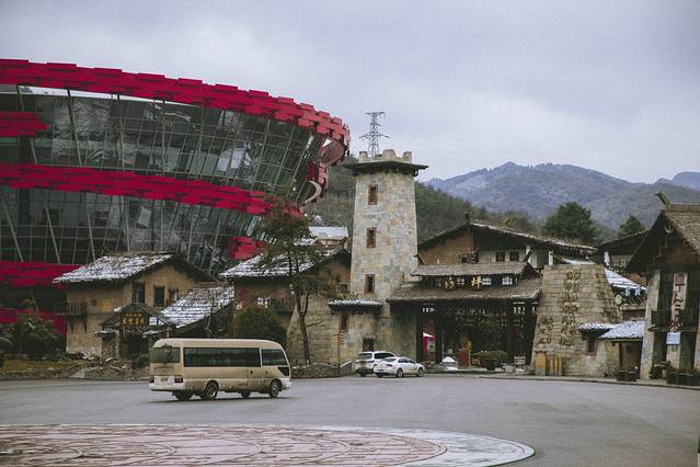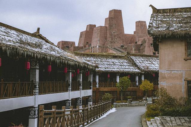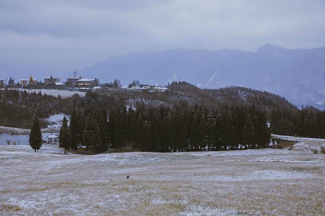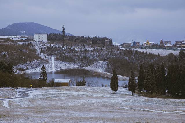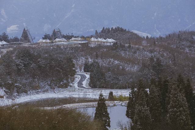 玉舍的山中颇有日系电影的画面感,远处一座座白色小雪屋散落在皑皑白雪之间,让玉舍的山中变成了雪国里的梦幻世界,漫天飘雪的时候更加有一种说不出的意境,仿佛身处梦幻般的仙境。