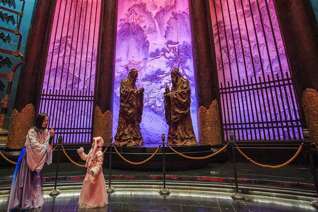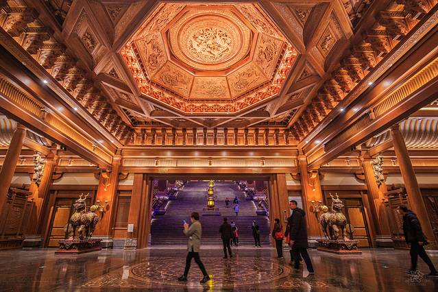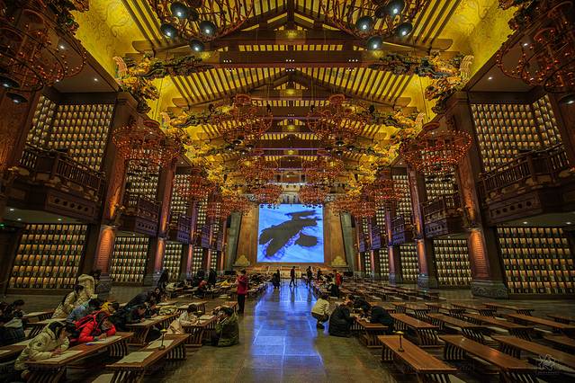 核心建筑“大学堂”的内部建筑令人极震憾。雕梁画栋,气势磅礴,“仁”“义”“礼”“智”“信”五个厅堂儒风气息浓厚,将儒家千古文化淋漓尽致的展现在于眼前。