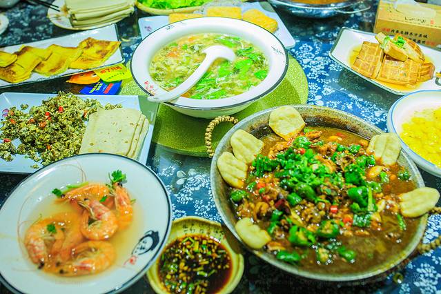 询问了一下店员周边的餐馆,位于酒店左前方不远的百福小厨可谓是相当接地气,奔波了一天众人连忙前往慰劳一下五脏庙,老板也是非常的热情,点菜的时候一再的提示,我们人少不要点太多的菜,差不多一人一个就够了,万一不够再点也可以。