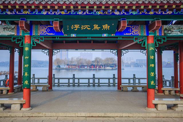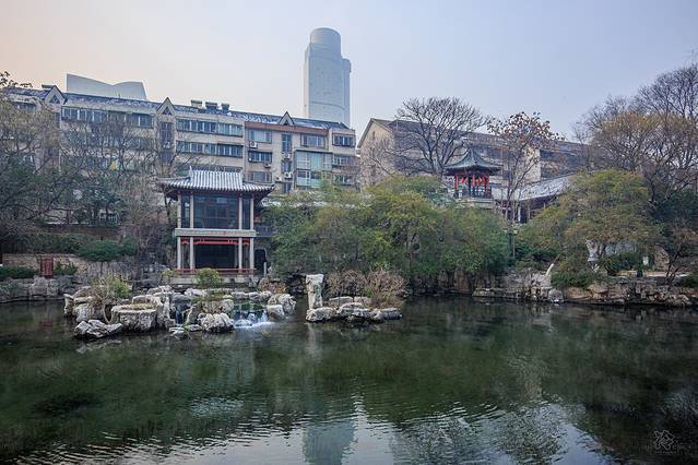 饭后沿着芙蓉街直接步行到了大明湖,来到济南你也一定会想要看看大明湖的“夏雨荷”吧,当然其实大明湖本身的看点也不仅仅在夏天的荷花,如此规模的城中湖花园也算是个中的翘楚,沿着两边的河岸步行,即便是在冬日里,依旧是相当的风韵十足,看着湖面往来的游船,勾起了我对于众多影视剧的回忆。