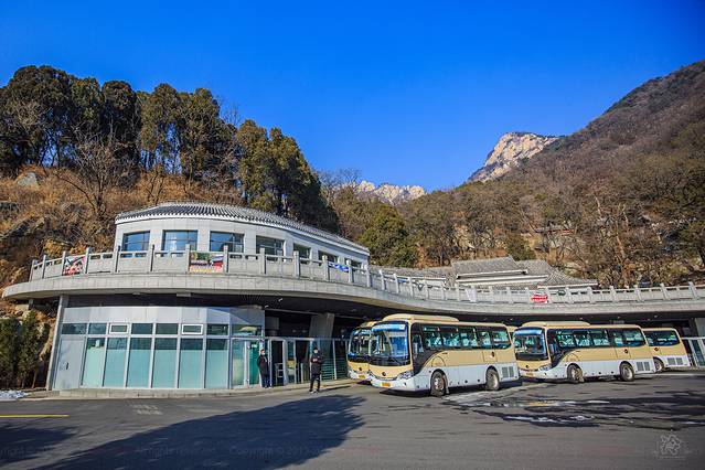 一般来说登泰山有四条路线:红门、桃花裕、天外村、天烛峰,每处的景色都是不同的。我们此行选择最为简便的天外村入口,因为这里可以直接搭乘景区游览车和登山缆车,相当节约体力和时间。