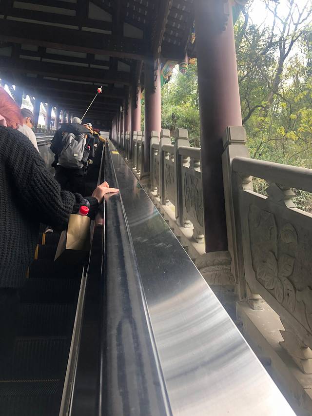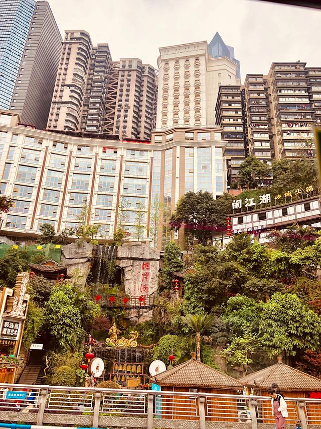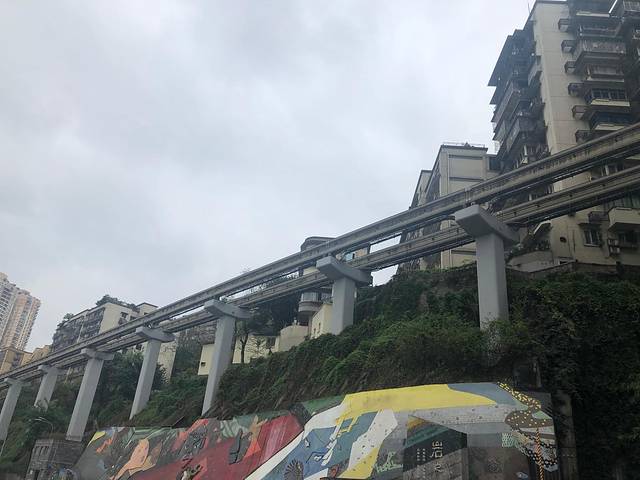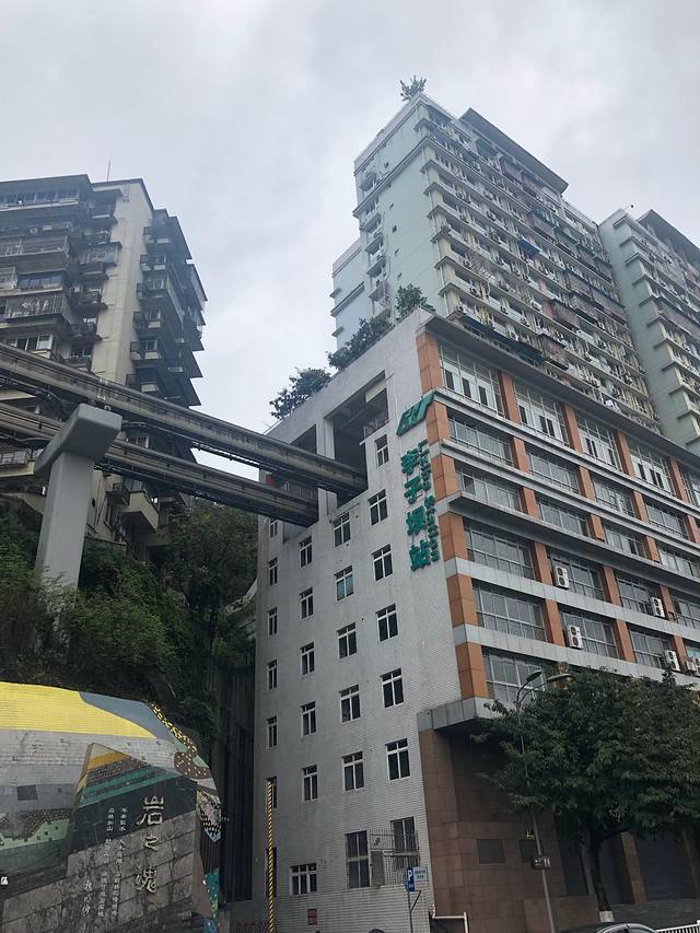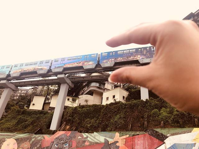 当你坐上轻轨2号线就会到达李子坝站,李子坝是一个轻轨站点,以轻轨进入楼中行驶而成了最火打卡点。每来一辆车都会有大批人举起手机咔咔咔拍照,导游和网上有各种拍照姿势介绍。网上居然还有一首写李子坝的歌,名字就叫李子坝。2号线的沿途风景非常好,沿途观景嘉陵江,超美。