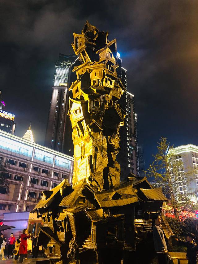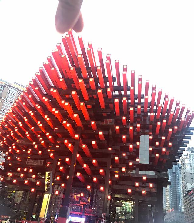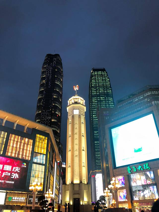 第4站:解放碑,解放碑是重庆重要的商圈,其实国泰艺术中心大楼别具特色。