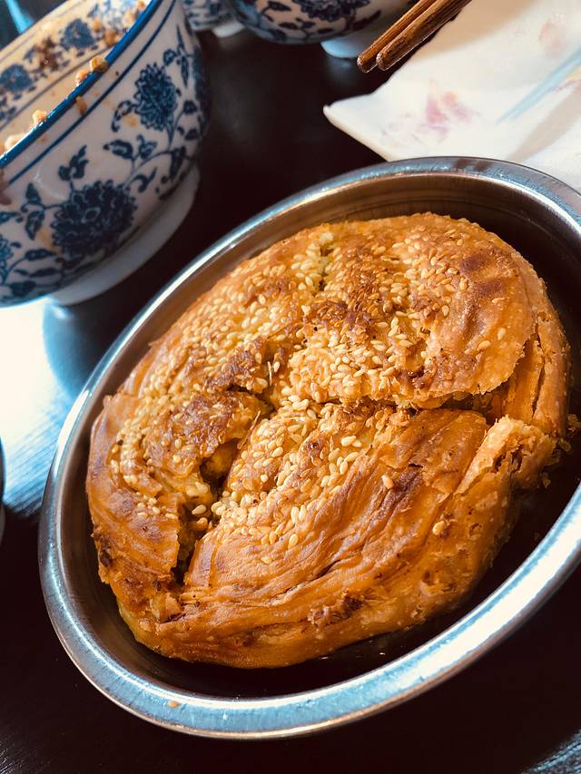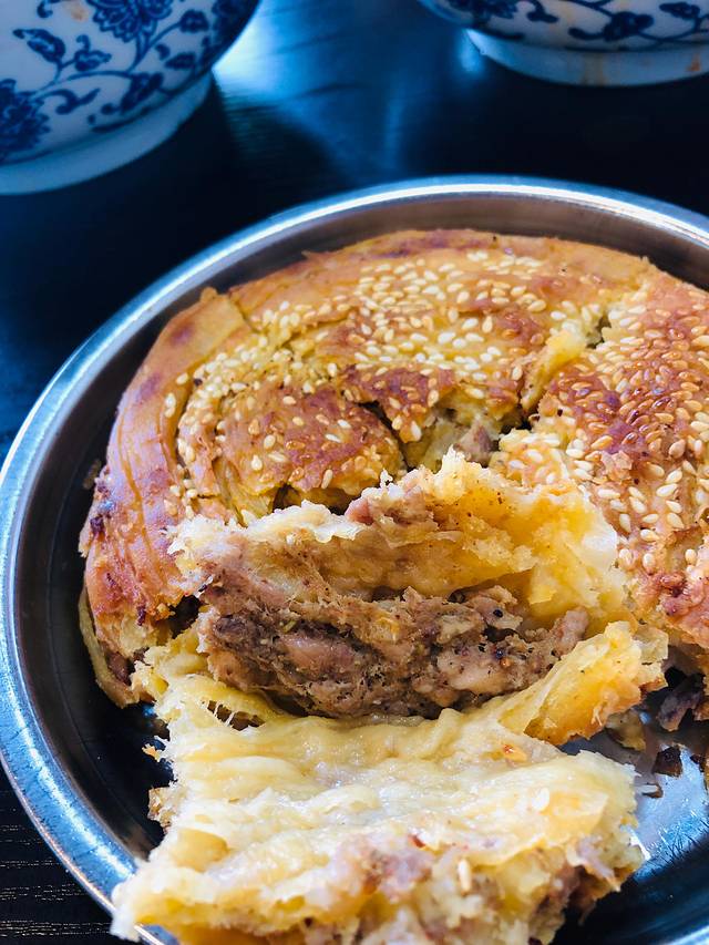 第一站必须是干饭,嘻嘻嘻,远远就看见这家店排着大长队,肯定味道不错,排队走起。锅魁就是肉馅酥饼,外皮超酥饼皮柔软肉馅麻辣又有又香,人间美味啊。。。