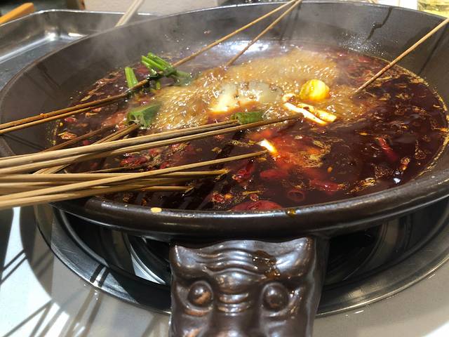 冒椒火辣的串串非常有名,从宽窄巷子步行就能到,实在懒可以骑车。进入店里就能感受到那种火辣的气氛,人超多辣椒油味超香。尝试了麻辣兔头,味道超好不过没什么肉。