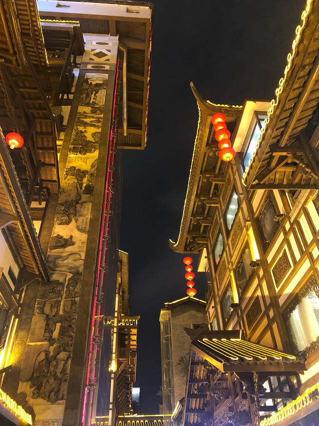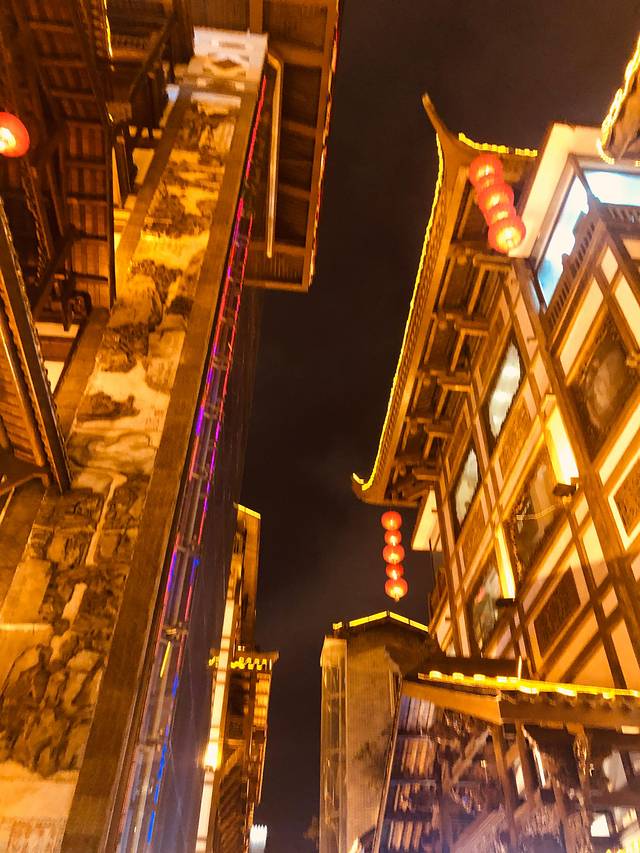 第4站:吃饱喝足,再去洪崖洞看夜景。洪崖洞超级复杂,跟重庆这个城市一样,是3D立体式的,在这里路痴不路痴已经不重要了。反正都会迷路。洪崖洞特别热闹,人间烟火气特别浓。
