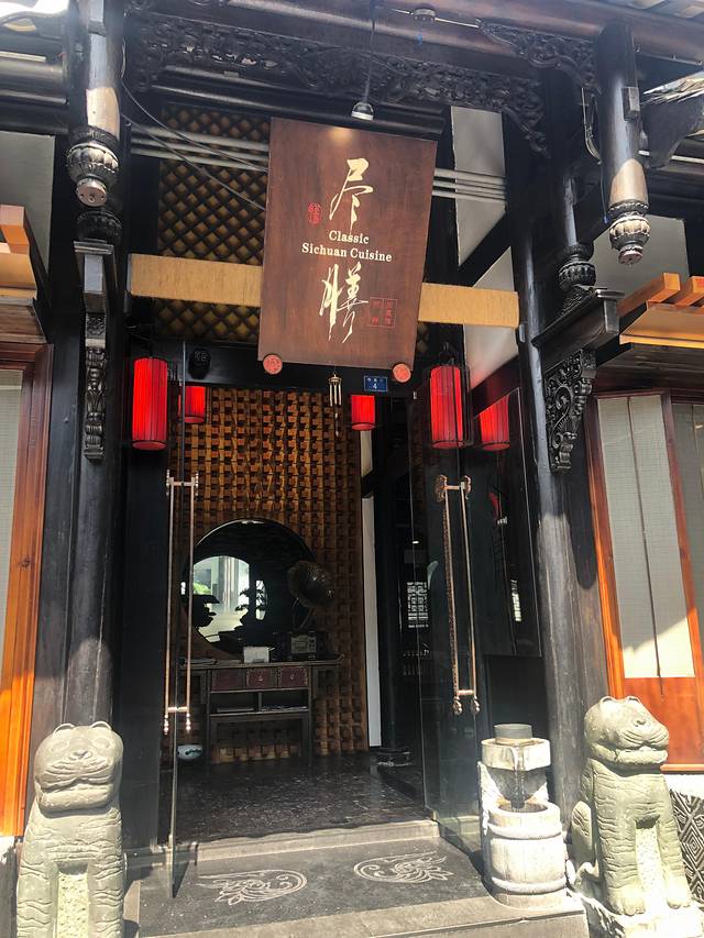 午餐旅行团带到了一家叫馋院的饭店,这个名字我很喜欢,如果以后自己能开饭店的话,一定要叫这个名字。馋院院中有免费试吃的串串,试吃好吃之后可以买一些火锅底料带走,这个方式还挺新颖的,还是四川人在吃上有研究。
