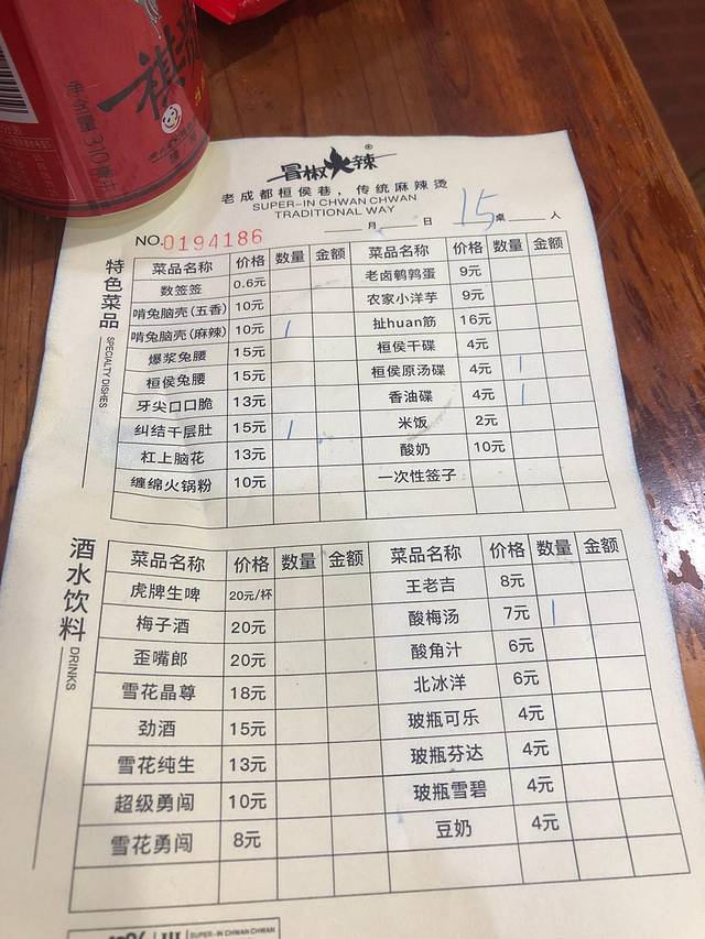 到成都已经十一点多了,预定的酒店提供接机服务,下飞机的时候接机的车已经到了。走在路上吹来的风都是火锅味的,真的只有在四川才会这样吧。到酒店放好行李,虽然快十二点了,但阻止不了我们吃火锅的热情,酒店楼下就有一家大斗砂锅串串,来瓶夺命大乌苏嗨起来。