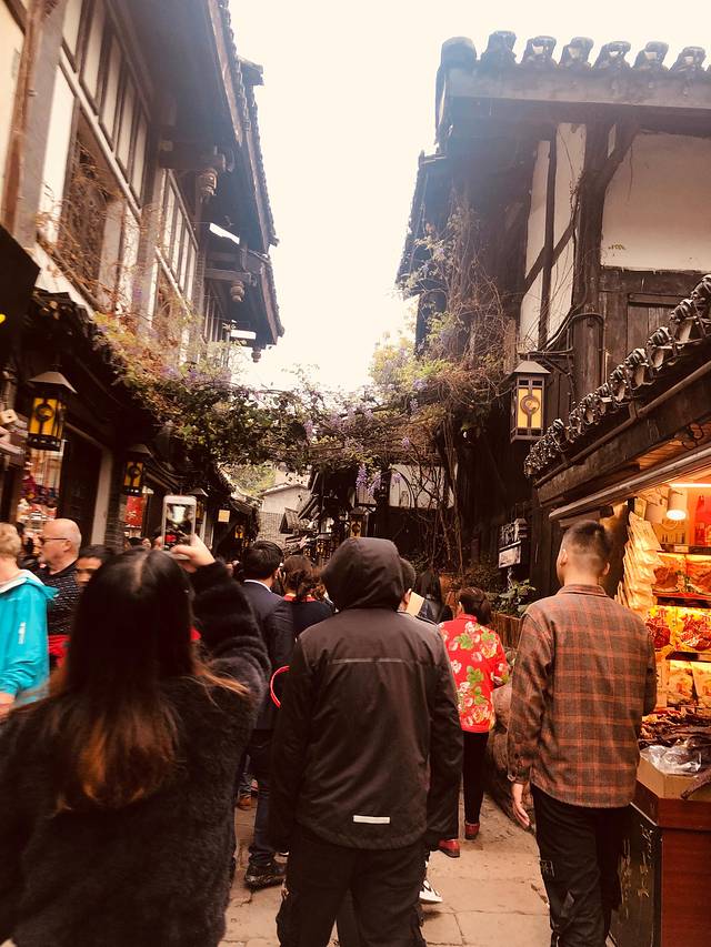第2站:磁器口,人超多,中心位置已经挤不进去了,随意走走,实在是不好逛,直接去对面商场吃李子坝梁山鸡了,何必跟人们挤呢。