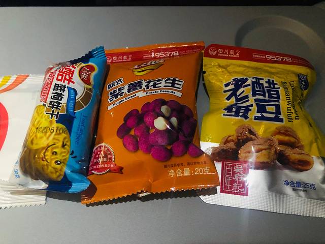 关于川航,这是一家让你做一次就深深爱上的航空公司。川航实在是太有特点了,好像是火锅界海底捞一样,特色鲜明印象深刻。首先说飞机餐,由于机票现在非常便宜,各家航空公司的飞机餐都开始缩水,连号称最好吃的南航都不太好吃了,川航的飞机餐我就非常喜欢,酸奶面包鱼香肉丝,居然还有烤玉米,爱了爱了。边吃还有空姐询问要不要辣酱,颇有川渝特色。吃完饭之后一般进入休息时间了,川航却在不停地发零食,各种各样的特色小零食不间断,让我这种吃货超级开心。不过还是有些小瑕疵的,飞机飞得特别不稳,人生第一次在飞机上感受到给油和刹车,有种坐公交车的感觉。